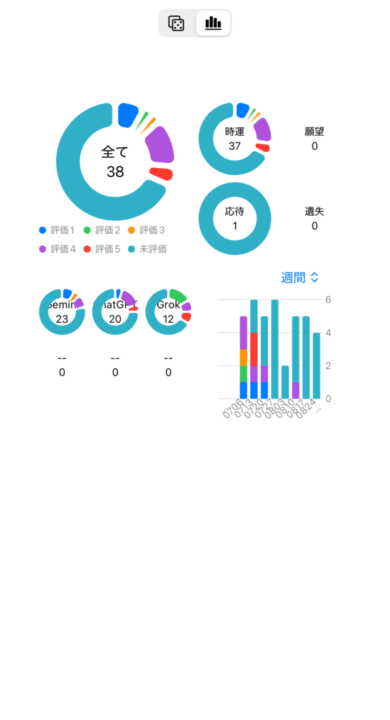 過去得た卦はグラフで可視化することができます。また、JSON形式で出力することも可能です。